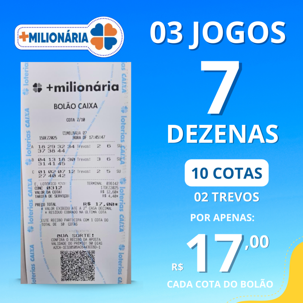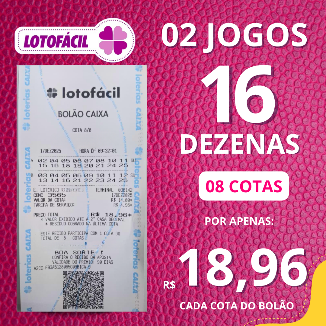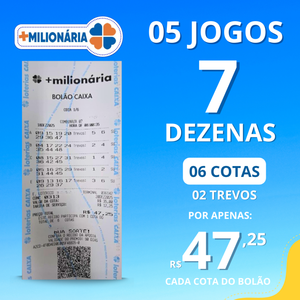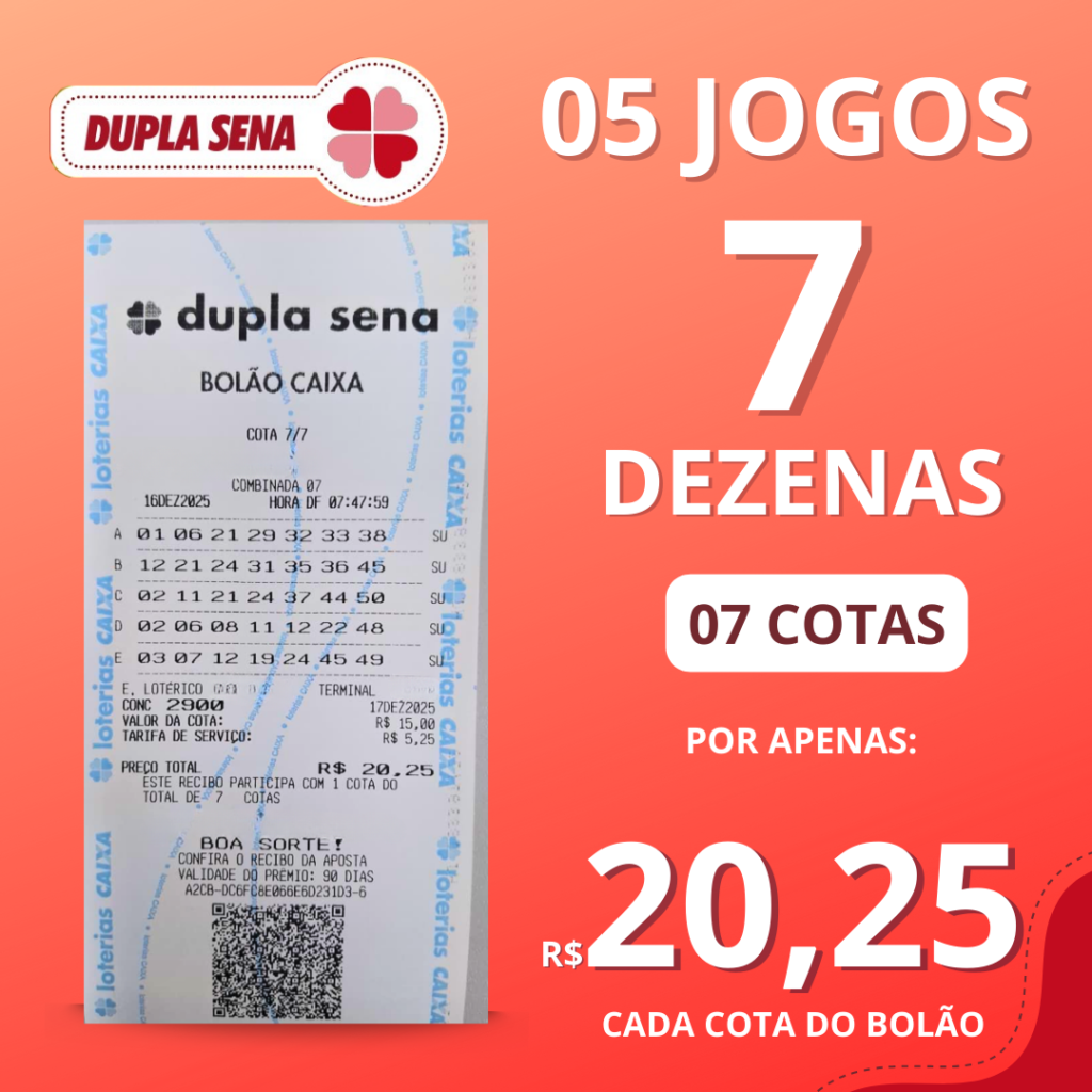Atenção! Cada bolão possui cotas limitadas, podendo acabar a qualquer momento. Consulte nossas colaboradoras e compre já o seu.