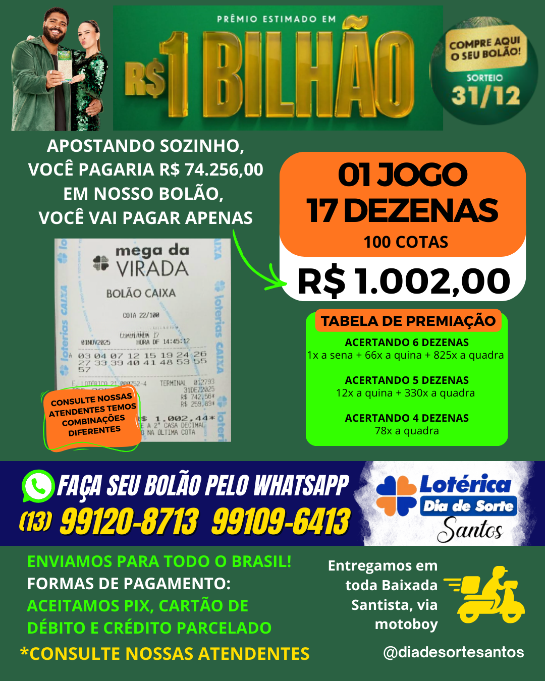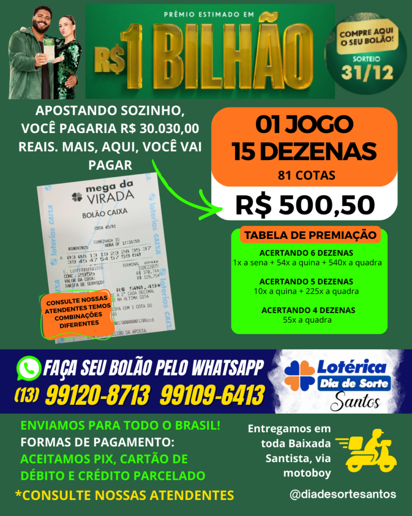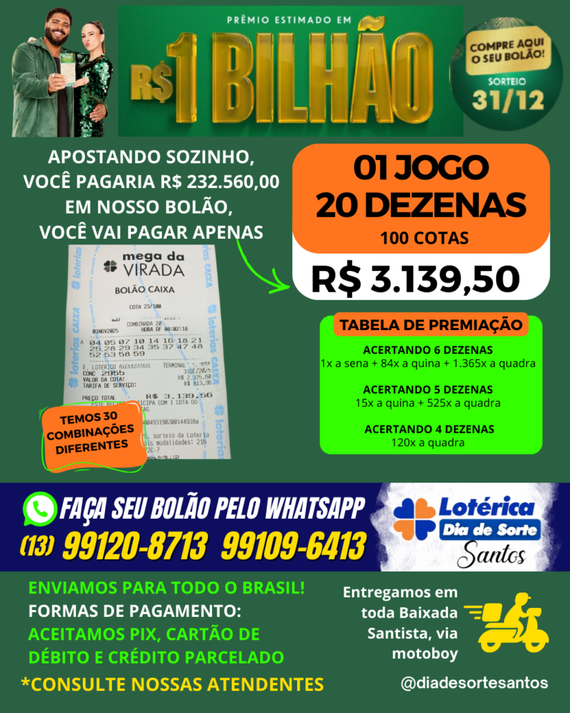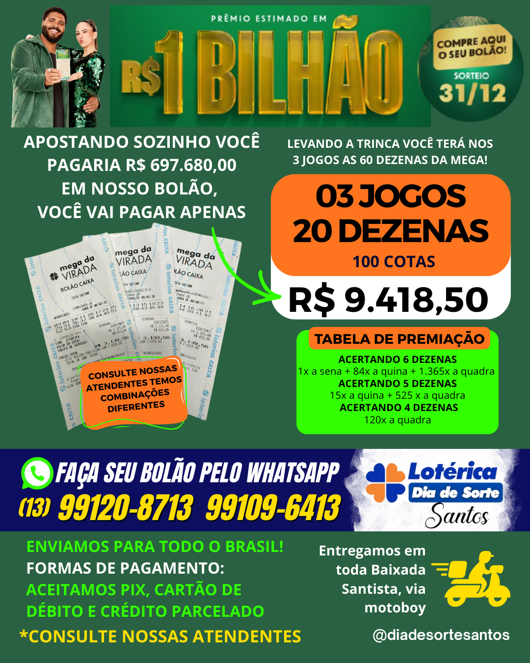 Entregamos seu bolão em toda Baixada Santista e também via Sedex para todo Brasil